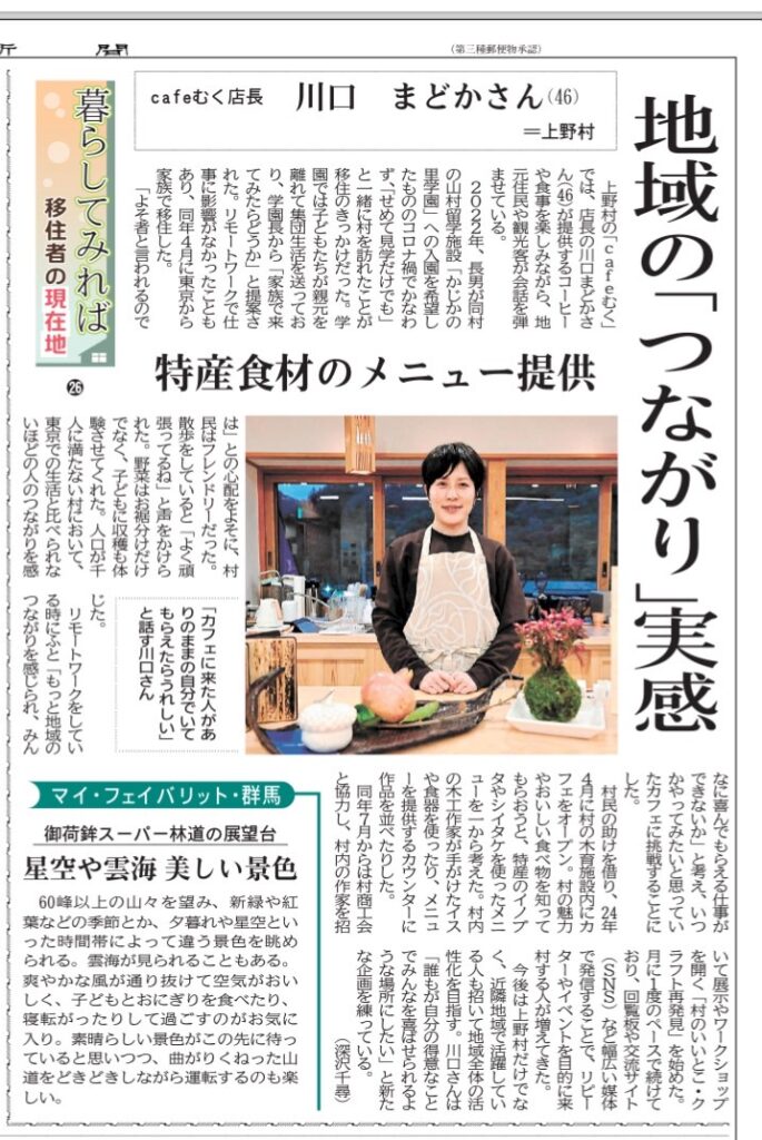 11月2日付けの上毛新聞にcafeむくが掲載されました。